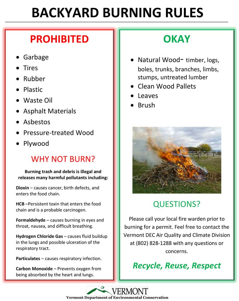 To learn more about Burn Permits download the Vermont Burn Permits pdf.
